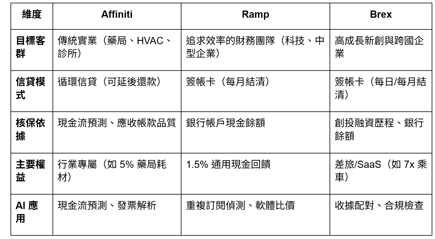 技術護城河 — Affiniti 採用 AI 進行「現金流動態核保」,直接對接行業 ERP 與保險支付數據,並針對實業特性提供循環信貸。